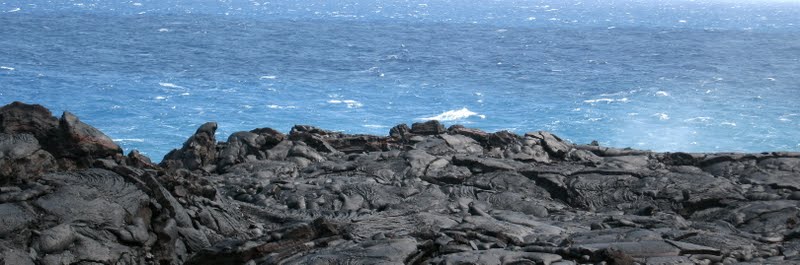 We had lunch at the Kealakomo Lookout where we could see the full extent of Mauna Loa to the north, the south point of the Big Island in the distance, the volcanic bench and rocky cliffs bordering the turquoise ocean tossing up huge plumes of spray, to the coiling lava beds obstructing the road to the east.